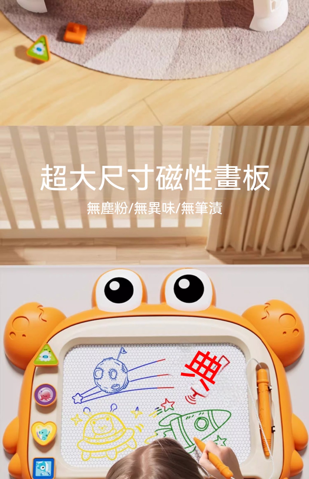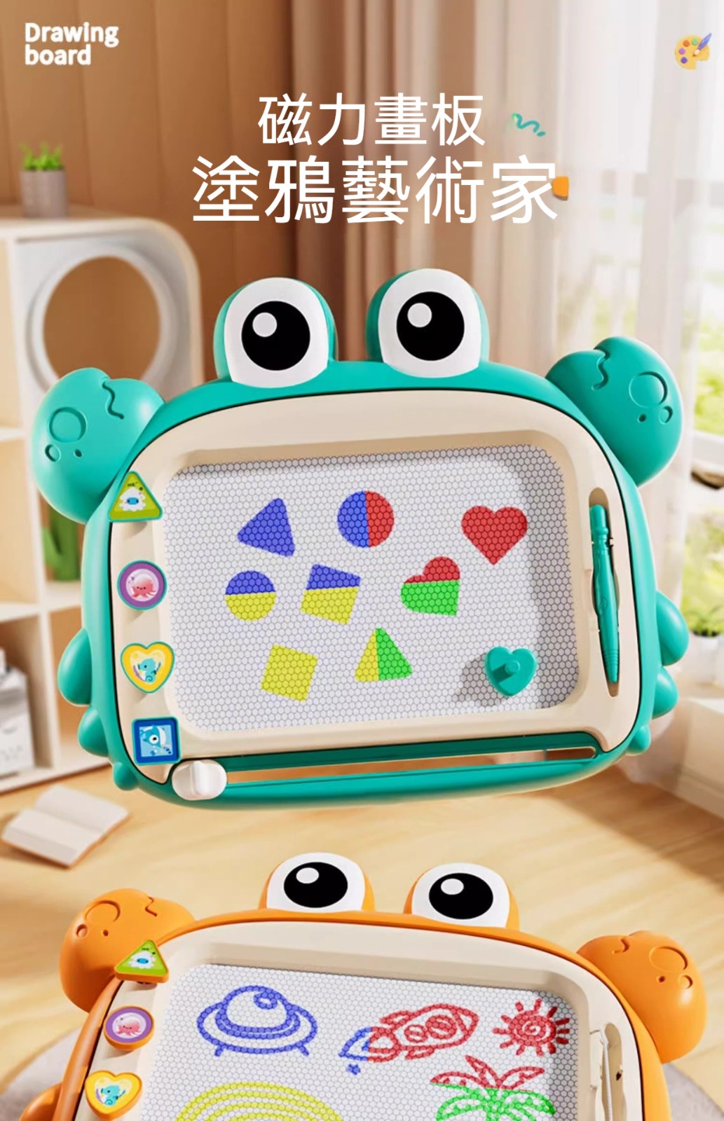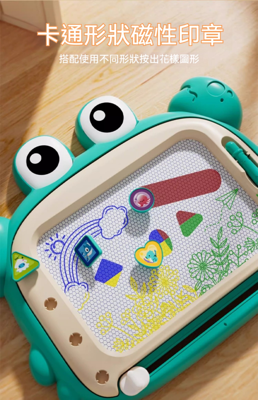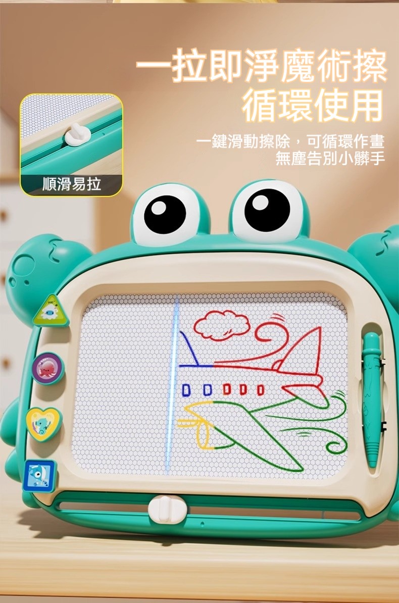 ✅這款「磁力塗鴉畫板」採用磁性顯像技術,無需墨水、無需顏料,乾淨不沾手。✅寶寶可以用磁性筆自由塗鴉、畫線條、學寫字,畫滿了輕輕一推清除滑桿,畫板瞬間煥然一新。✅大號畫板,揮灑空間更寬廣;✅鮮豔色彩,吸引寶寶目光,是幼兒啟蒙繪畫、握筆訓練的最佳選擇!